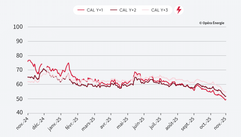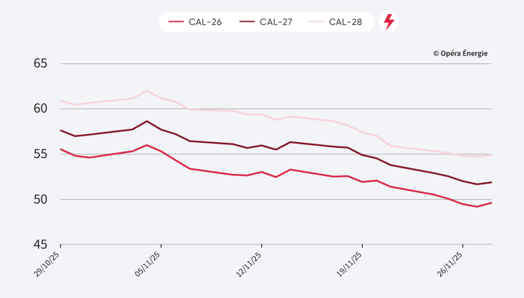 - Cal-26 : 49,59 €/MWh