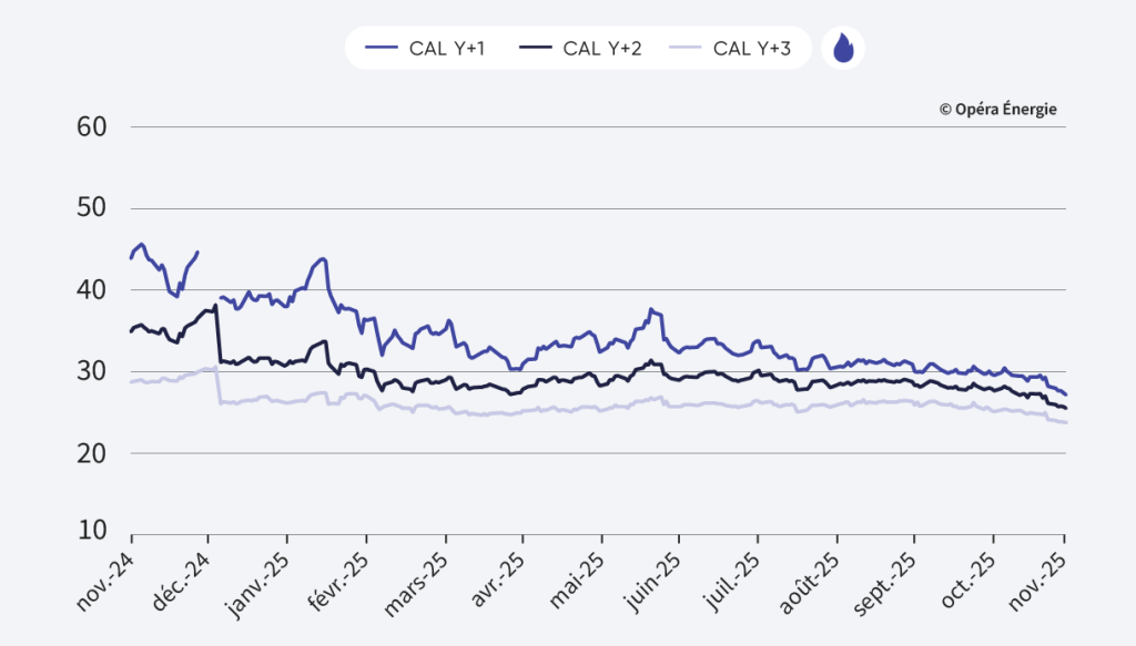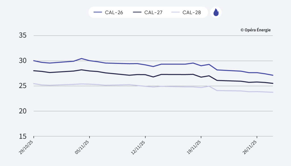- Cal-26 : 27,13 €/MWh