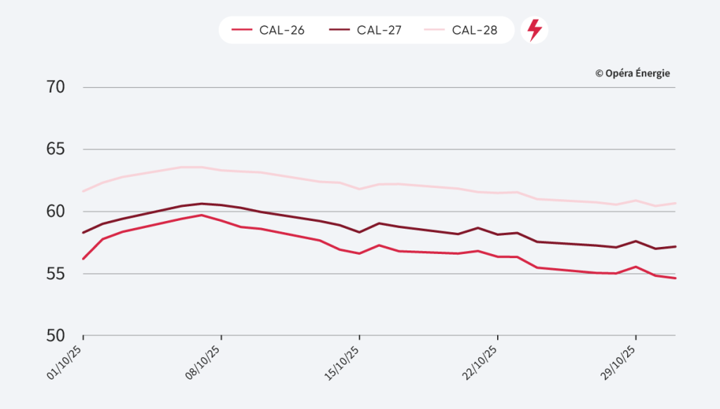 Évolution des prix de l’électricité depuis 1 mois (en €/MWh)