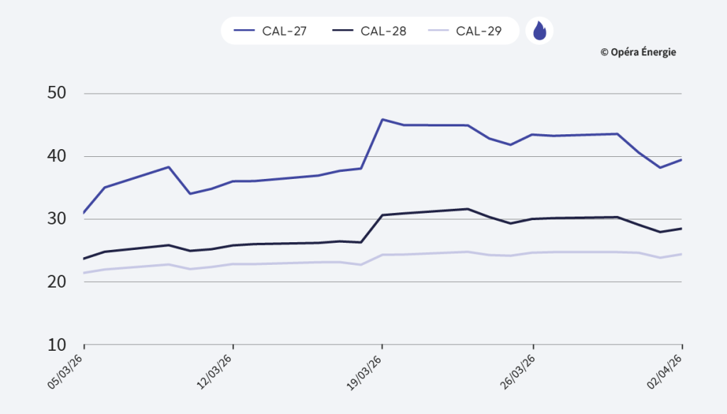 Évolution hebdomadaire des prix du gaz (en €/MWh)