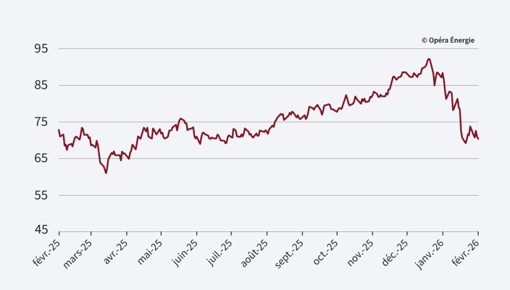 Alors qu’ils sont restés stables semaine dernière, les prix du gaz ouvrent en nette hausse ce lundi, dans un contexte d’escalade militaire au Moyen-Orient. Le blocage du détroit d’Ormuz par l’Iran (corridor stratégique par lequel transitent près de 20 % des exportations mondiales de GNL) fait craindre la perturbation la plus sérieuse depuis 2022. Le trafic de méthaniers y est quasi à l’arrêt, plusieurs cargaisons qataries ayant été interrompues. Si l’Europe dépend moins directement du Qatar que l’Asie (environ 15 % de ses importations), toute contraction des flux renforcerait la concurrence asiatique sur les cargaisons, resserrant l’équilibre mondial. Le risque est accentué par des niveaux de stockage européens historiquement faibles (moins de 31 % contre 40 % l’an passé). Dans ce contexte, le marché intègre une prime géopolitique croissante, d’autant que la hausse du Brent pourrait renchérir également les contrats GNL indexés pétrole.