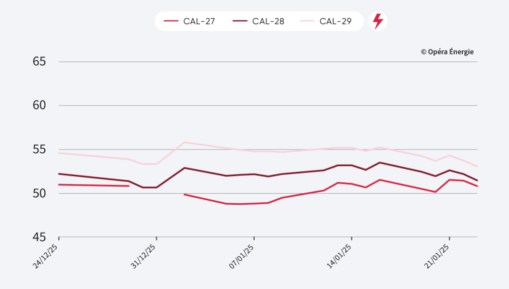 - Cal-29 : 53,05 €/MWh