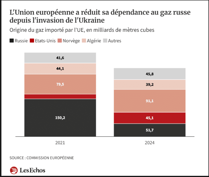 Un retrait planifié : de 45 % à moins de 15 % de gaz russe en cinq ans