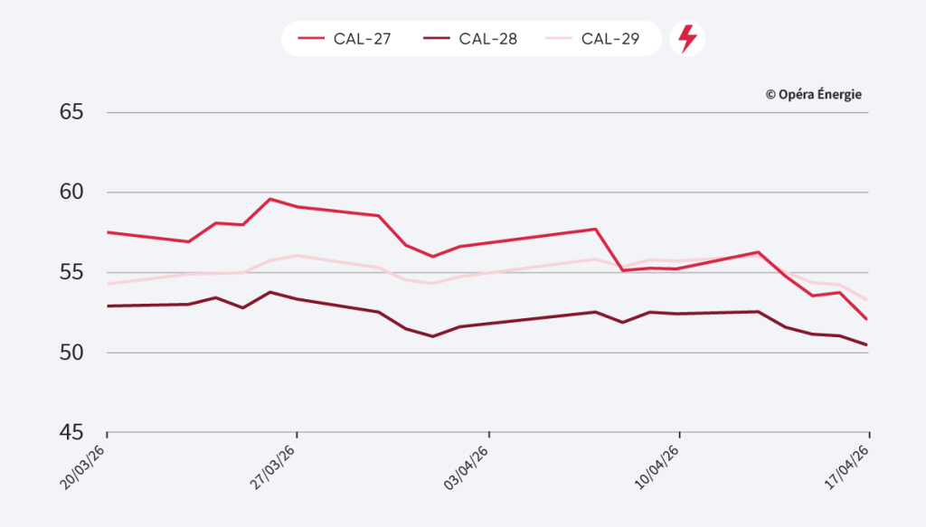 - Cal-28 : 50,40 €/MWh